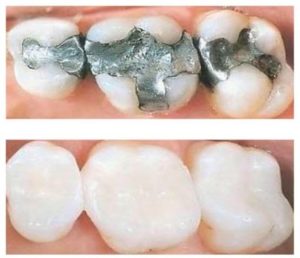Cosmetic porcelain dental fillings can be colored to match the decayed tooth. White fillings provide an end result that is both aesthetically seamless and highly durable.  Patients with existing metal dental fillings may consider having their fillings replaced with white ceramic fillings for a more natural look.